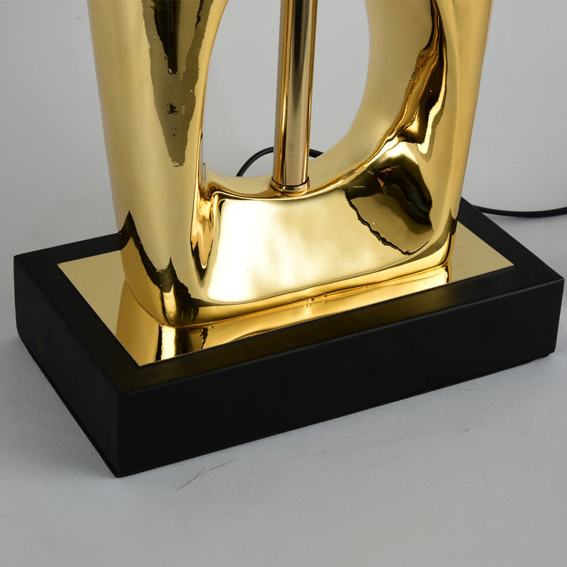 Ajoutez une touche artistique et élégante à votre intérieur avec cette lampe de table originale. Le corps sculptural en or associé à l'élégant abat-jour en tissu noir fait de cette lampe un véritable accroche-regard sur n'importe quelle commode, bureau ou table de chevet. Idéale pour un intérieur luxueux, moderne ou contemporain.