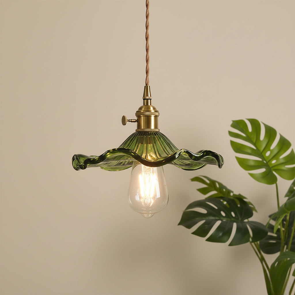 Cette suspension en verre apporte une touche raffinée et tropicale à votre intérieur, tout en étant un élément décoratif central. Son design floral et élégant s'intègre parfaitement dans divers espaces de vie.